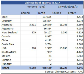 2017年巴西和烏拉圭是中國的牛肉主要供應(yīng)國
