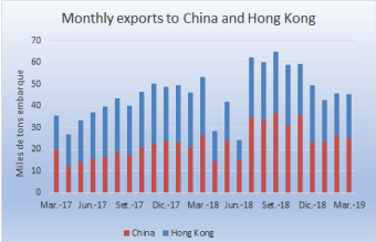 水漂貨從香港進入中國很困難,影響到了今年第一季度巴西對香港的出口,雖然出口中國的量增加了6%,但并不足夠彌補香港份額25%的減少,香港第一季度只進口了13.33萬噸,同比減少1.5萬噸。減少的這部分量被中國從澳洲、烏拉圭和阿根廷直接進口的量所替代。