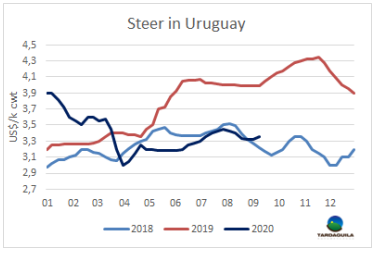 過去兩周,烏拉圭牛肉在美國市場的表現(xiàn)與預(yù)期脫軌。美國國內(nèi)牛肉產(chǎn)量旺盛,抑制了進(jìn)口業(yè)務(wù)的興趣,甚至連還價都沒有收到。此外,隨著氣溫的下降,美國餐飲的牛肉銷售開始放緩。