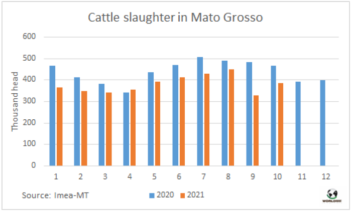 10月馬托格羅索州屠宰量增長