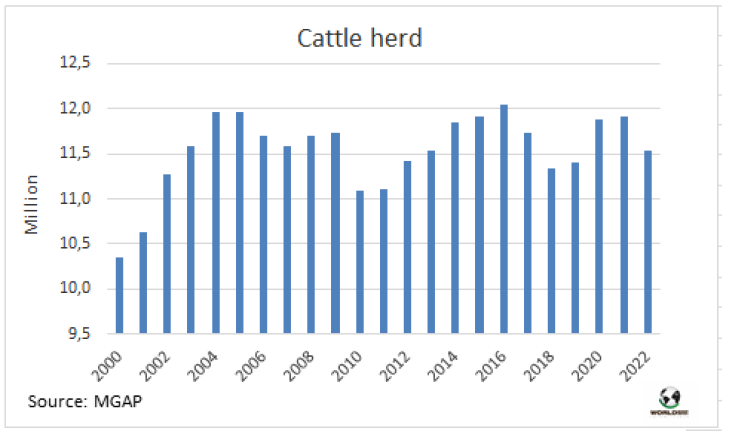 上半年烏拉圭牛存欄較預期減少35.1萬頭