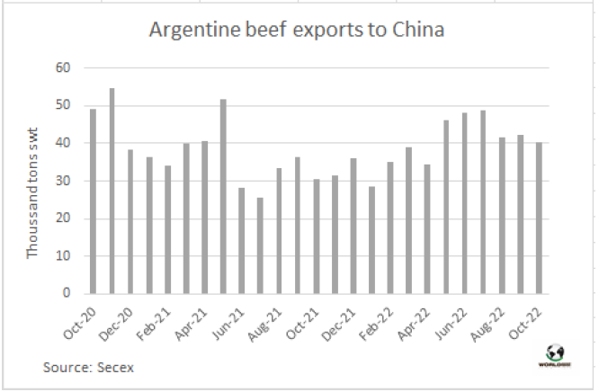 10月阿根廷牛肉出口量環(huán)比下降了6%,同比增長25%