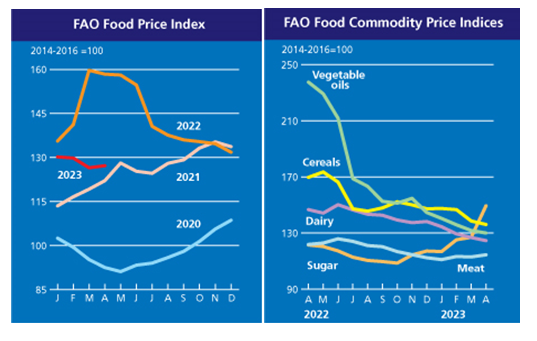 4月份,聯(lián)合國糧食及農(nóng)業(yè)組織(糧農(nóng)組織)編制的食品價格指數(shù)平均為127.2點。盡管與3月份相比,該指數(shù)增長了0.6%,而且是12個月以來的首次積極變化,但該指數(shù)比去年同月低19.7%。