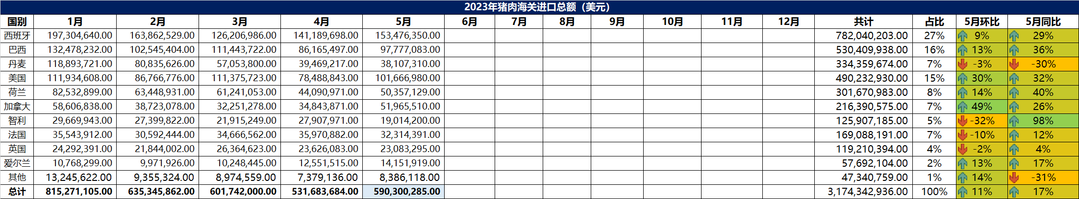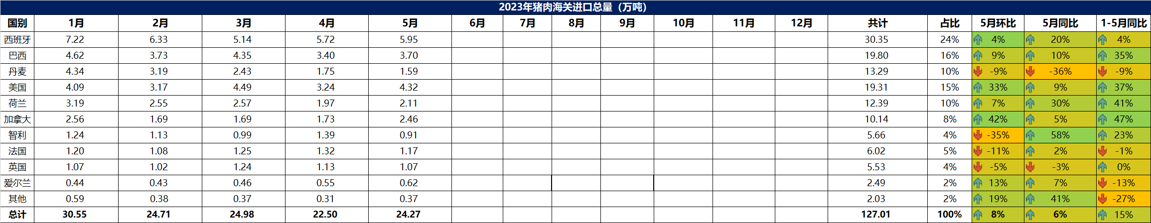 2023年5月冷凍豬肉進口數(shù)據(jù)