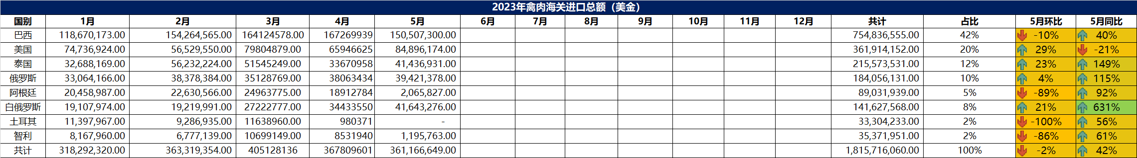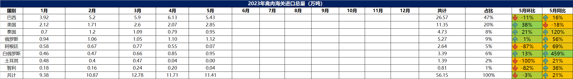 2023年5月冷凍禽肉進口數(shù)據(jù)