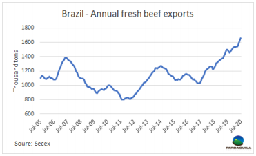 在為期一個月的暫停出口中國后,馬托格羅索州的3941廠可以恢復(fù)牛肉到中國的出口了。中國海關(guān)總署7月18日更新了符合條件出口至中國的企業(yè)名單,其中包括3941廠。中國衛(wèi)生部門還批準了德國和阿根廷各一家工廠對中國的出口。這一決定預(yù)示著肉類行業(yè)可以松一口氣。通過解除出口限制,中方表示,為避免新冠感染風險而采取的暫停措施是臨時性的,在合理解釋后可以取消。6月開始,有6家巴西工廠由于有雇員感染新冠病毒暫停了出口中國的執(zhí)照。上周三,中國官方要求巴西提供15家工廠的信息并要求暫停另外兩家工廠出口中國。