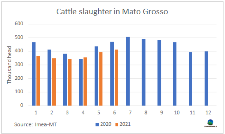 今年上半年馬托格羅索州屠宰量同比下降了11.6%