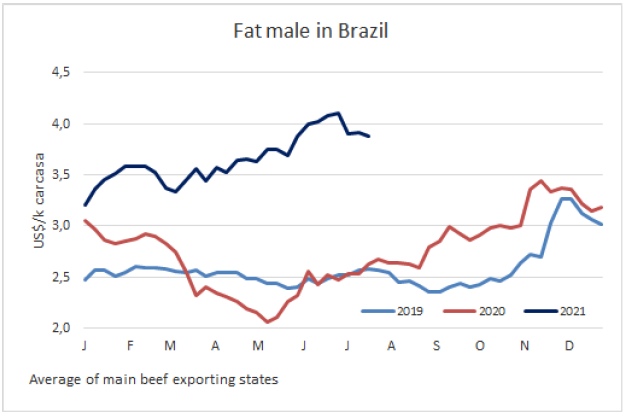 南方共同市場閹牛價格上漲1美分