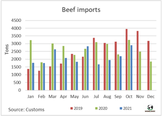 10月中國肉類進(jìn)口量達(dá)20個月以來最低