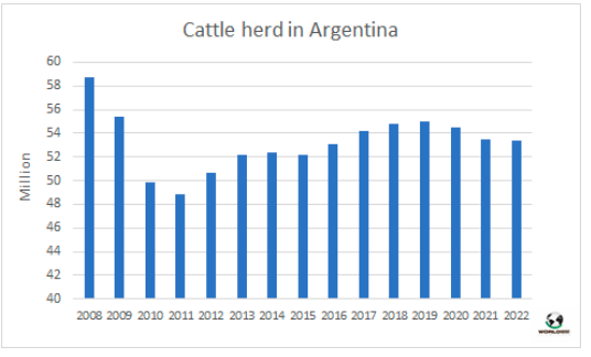 政府報告稱,截至2021年12月,活牛存欄量為53416435頭,比2020年底減少約10萬頭(減少0.2%)。這一數(shù)據(jù)被執(zhí)政黨解釋為“平衡局面”,因為在過去的兩年里,存欄下降了 150萬頭,其中近90萬頭是母牛。