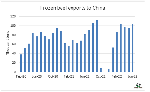 6月牛肉對中國出口量再次大幅增長