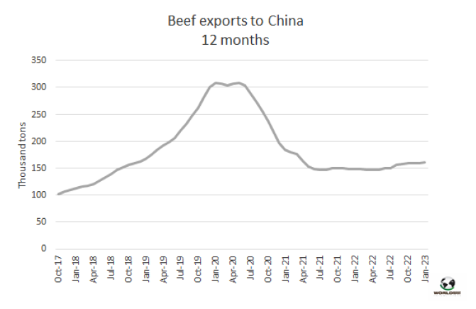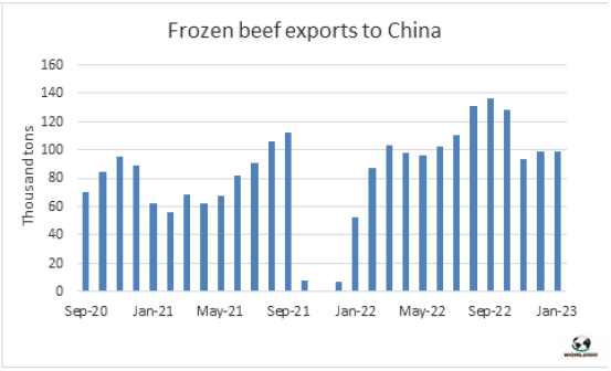 1月全球牛肉對(duì)中國(guó)出口量是一年以來(lái)最低