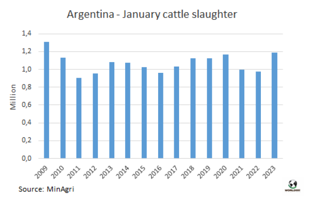 阿根廷1月牛屠宰量是2009年以來(lái)最高