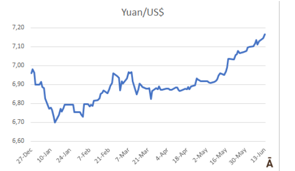 中國市場情況仍然不容樂觀。價格不知道何時會觸底,對于拐點何時到來仍有很大的不確定性。進口牛肉市場持續(xù)下調。另一個使市場情況變得復雜化的因素是人民幣的貶值。人民幣在上周貶值0.7%,在過去五個月累計貶值6.9%,使進口產品在成本更高。另一方面,央銀行宣布將短期利率從2.0%降至1.9%后,意味著政策性降息啟動,預計該趨勢將進一步加劇。