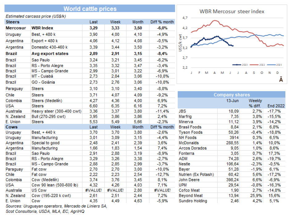 在該地區(qū)唯一一個價格沒有下降的國家是巴拉圭,那里的屠宰牛仍為$3.10/公斤。