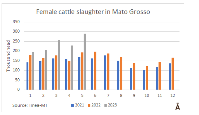 馬托格羅索州農業(yè)經濟研究所報告稱,從草料產量較低的季節(jié)開始,加上牛周期的低谷期,導致馬托格羅索州5月母牛屠宰量創(chuàng)新高。