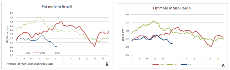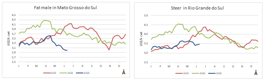 在圣保羅,中國牛已不再溢價,但在其他幾個周仍保持在R$/@10-15的溢價。