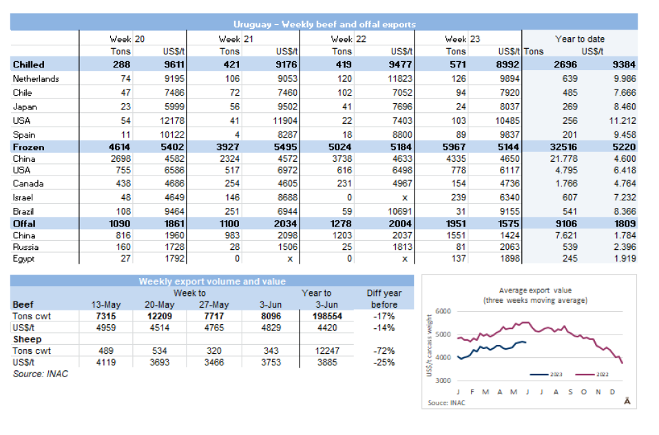 與該地區(qū)其他國家相比,烏拉圭簽訂運往以色列的常規(guī)猶太屠宰合同的可能性一直很低,因為需要支付較高的原料價格。然而在上周,一些進口商完成了飼養(yǎng)牛的交易,因為優(yōu)質草食動物的供應非常有限。一位市場人士說他們正在談判,一些阿根廷工廠已經停止了每噸$8000的FOB報價。