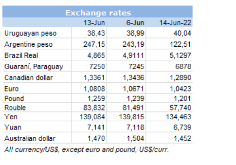 市場價格持續(xù)下跌。一位貿易商舉了一個例子,烏拉圭當時以$5500的CFR價格出售,兩天后每噸下降了$500,而本周的出價是$4800。在付款時要格外小心,因為進口商損失是巨大的,庫存的產品價值比目前的市場價要高得多。