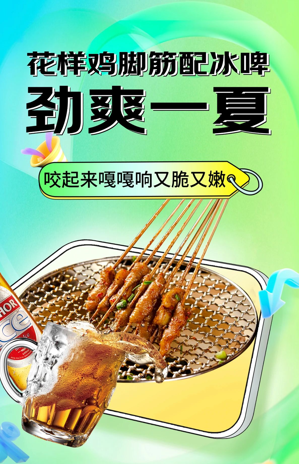 在夏日的晚風中感受或熱血、或悠然、或放空的時光。一桌燒烤、一鍋串串,少不了雞腳筋的勁爽加持,配上一杯啤酒或清茶,便是人間好夢長。