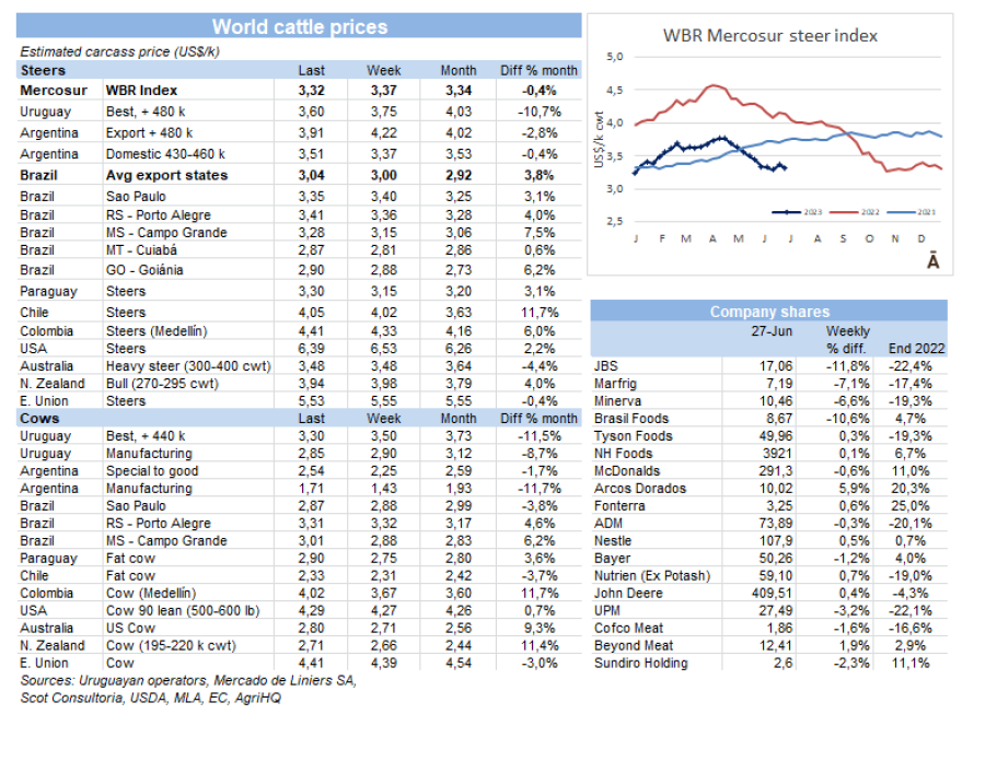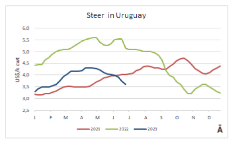 烏拉圭肥牛價格下降,小牛的價格穩(wěn)定