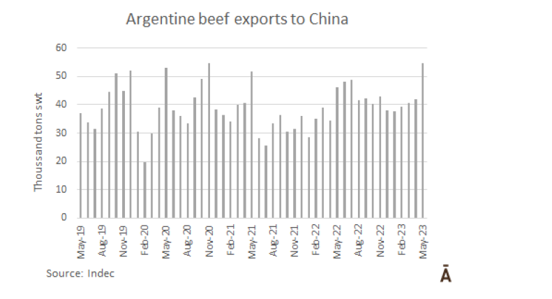 據(jù)報道,5月份冰鮮和冷凍牛肉的出口量達(dá)到近65,100噸,比上個月多出22.4%,比2022年5月多出13.1%,是自2020年11月以來的42個月最大月出口量。