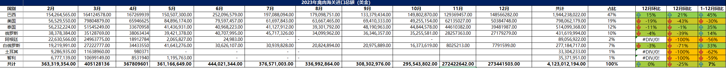 2023 年 12月冷凍禽肉進(jìn)口概況