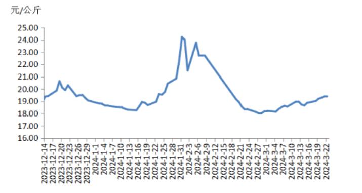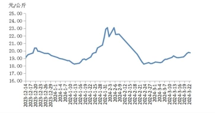 據(jù)農業(yè)農村部信息中心和山東卓創(chuàng)資訊股份有限公司聯(lián)合監(jiān)測,2024年第12周(即2024年3月18日-3月22日,以下簡稱本周),16?。ㄖ陛犑校┦萑庑桶讞l豬肉出廠價格總指數(shù)的周平均值為每公斤19.55元,環(huán)比上漲2.0%,同比上漲1.3%,同比由跌轉漲。