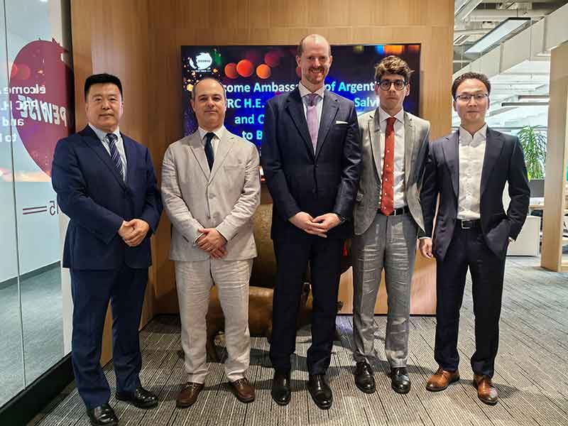 7月19日,阿根廷駐華大使H.E. Marcelo Suarez Salvia一行蒞臨北京泓睿辦公室參觀交流,北京泓睿董事長孫永利及采購部主管張衍彬代表公司熱情接待。