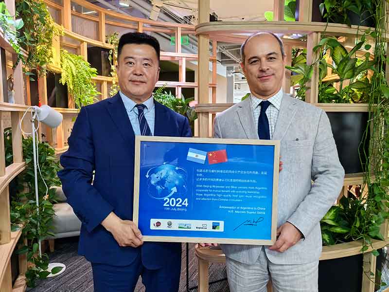 另外,阿根廷駐華大使對中國牛肉消費市場表示關(guān)切,就消費者是否知道我司牛肉產(chǎn)品的產(chǎn)地等問題進(jìn)行詢問。大使就阿根廷乃至南美的農(nóng)業(yè)市場情況與我司進(jìn)行溝通,提出阿根廷的乳制品市場也有巨大的開發(fā)空間,孫總也積極表示愿意提供幫助。