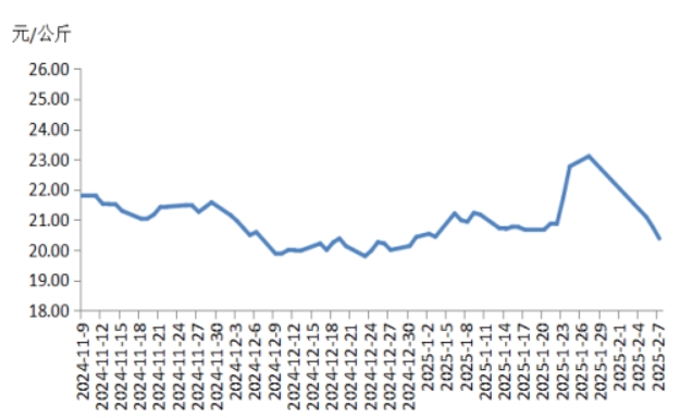 本周,廣東豬肉周均價為每公斤21.73元,環(huán)比上漲2.1%,同比上漲9.8%,較上周漲幅擴大1.6個百分點。上周屠宰企業(yè)暫未開工,豬肉供應有限,屠宰企業(yè)有挺價情緒;同時,外地返回廣東務工的人員尚未完全恢復,廣東地區(qū)目前人流量相對較少,豬肉消費暫時疲軟,使得豬肉價格較上周末小幅下跌后趨穩(wěn),仍高于上周均價。總體看,本周廣東地區(qū)豬肉周均價環(huán)比上漲。