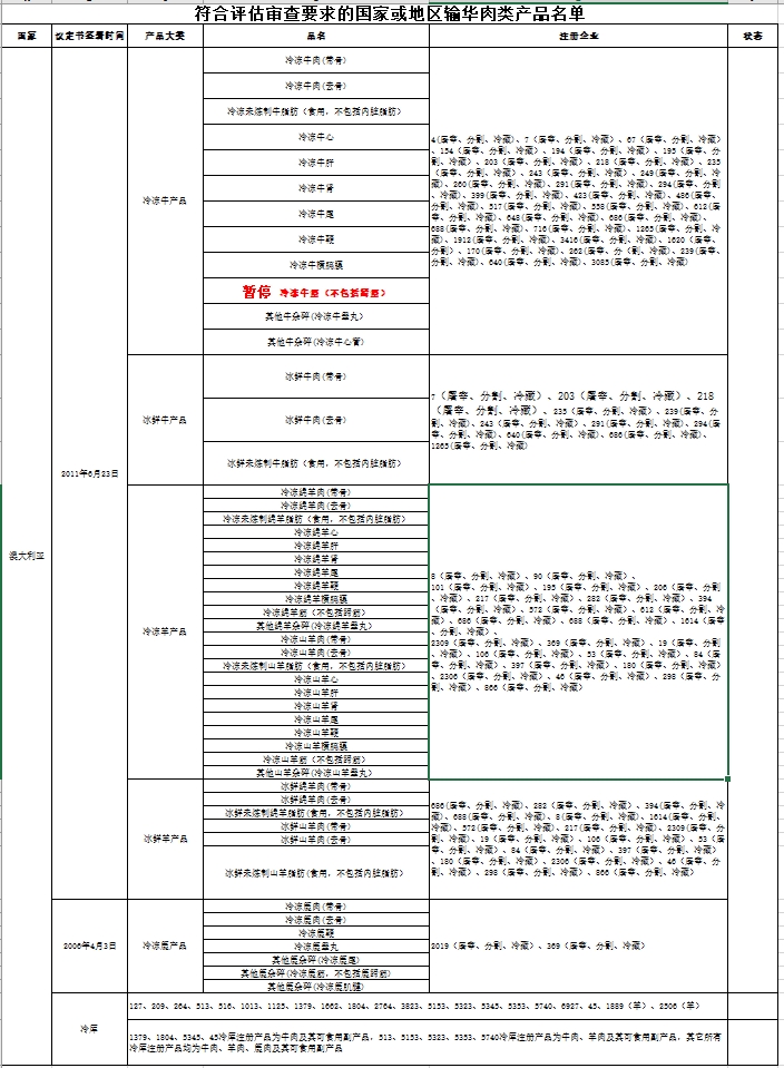 澳大利亞17家羊肉生產(chǎn)企業(yè)自2025年4月25日及之后生產(chǎn)的符合中國要求的羊肉產(chǎn)品輸華。