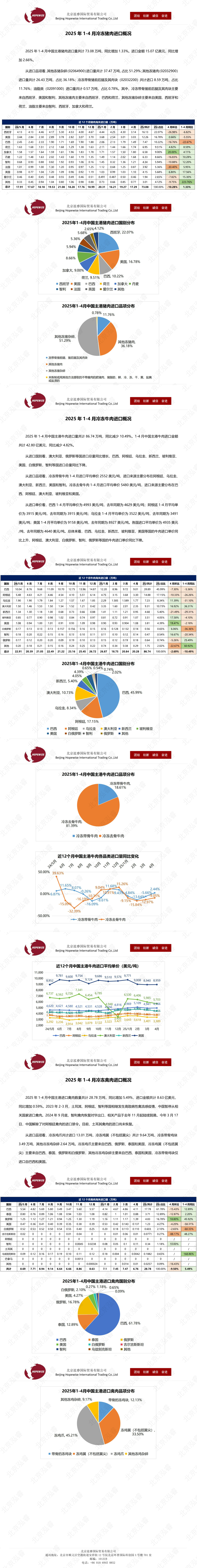 2025年1-4月冷凍豬牛禽肉海關(guān)進(jìn)口數(shù)據(jù)